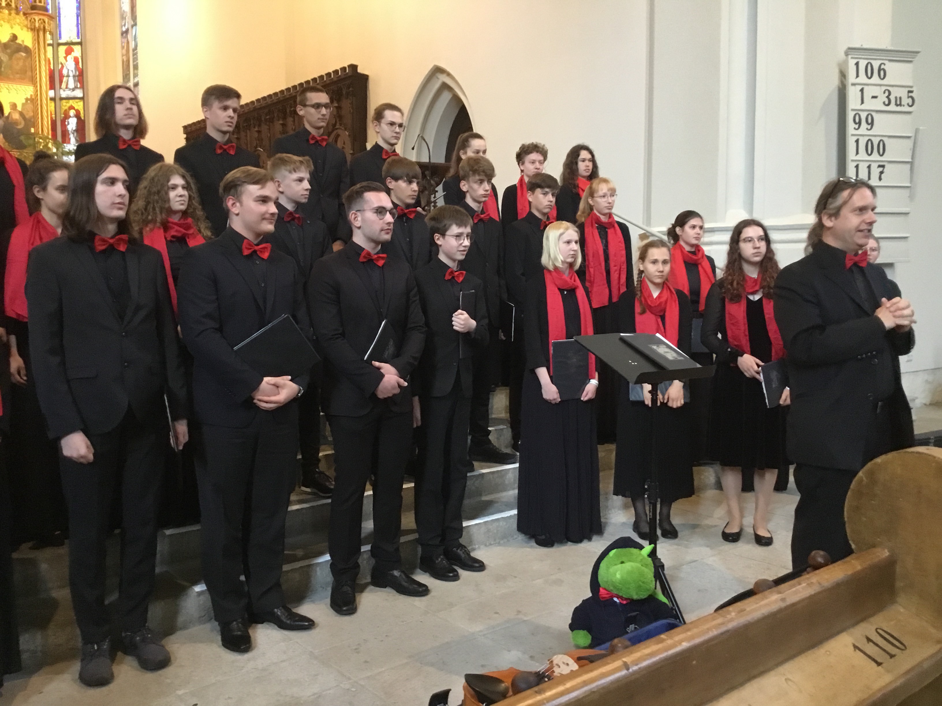 Herr Hartwiger, unser Chorleiter, hat im Finale des Konzertes zu dem Titel „Ave herum Corpus“ beide Chöre, unseren Jugendchor und einen für ihn bisher völlig fremden Chor, hervorragend geleitet und dirigiert.