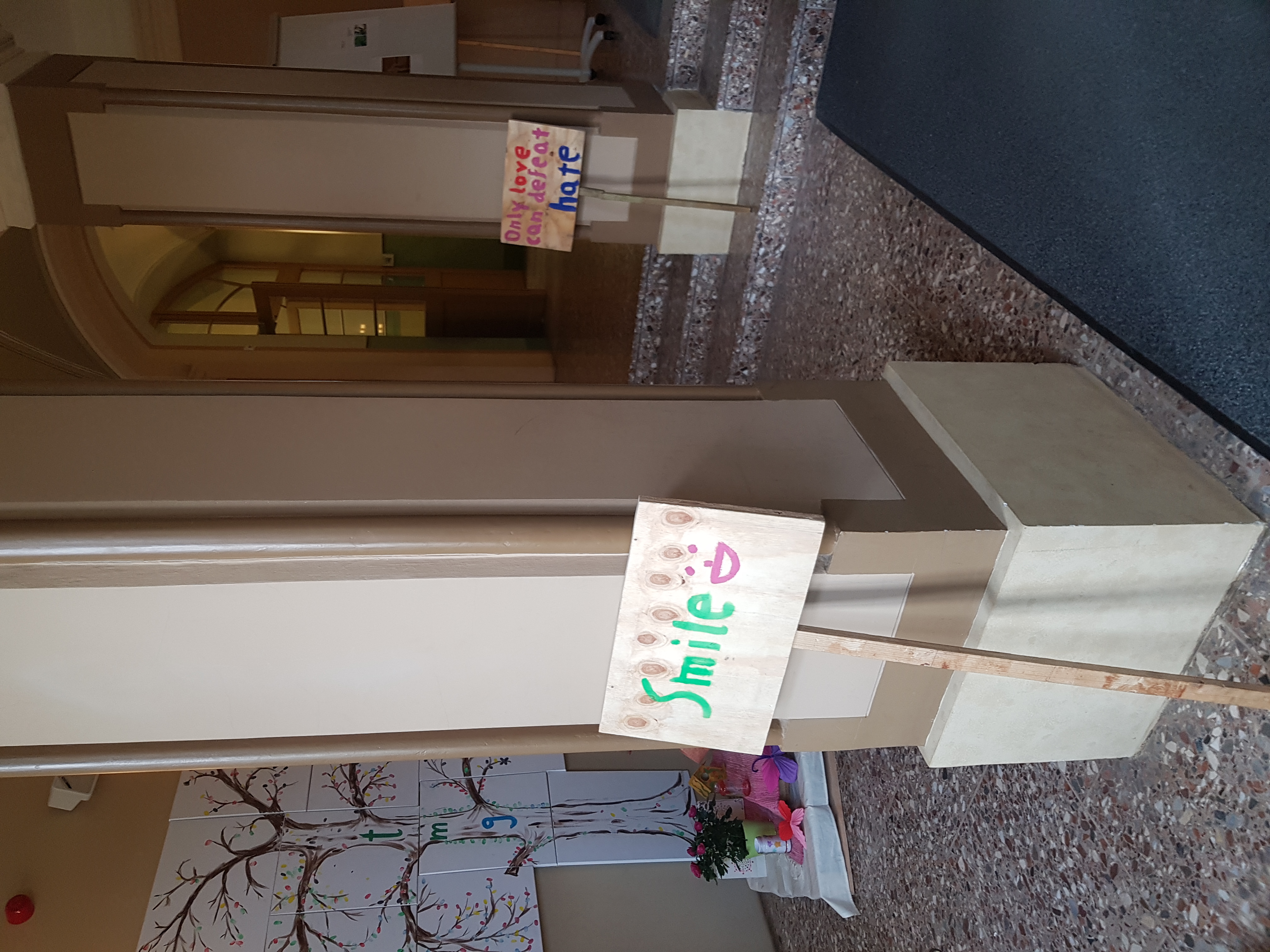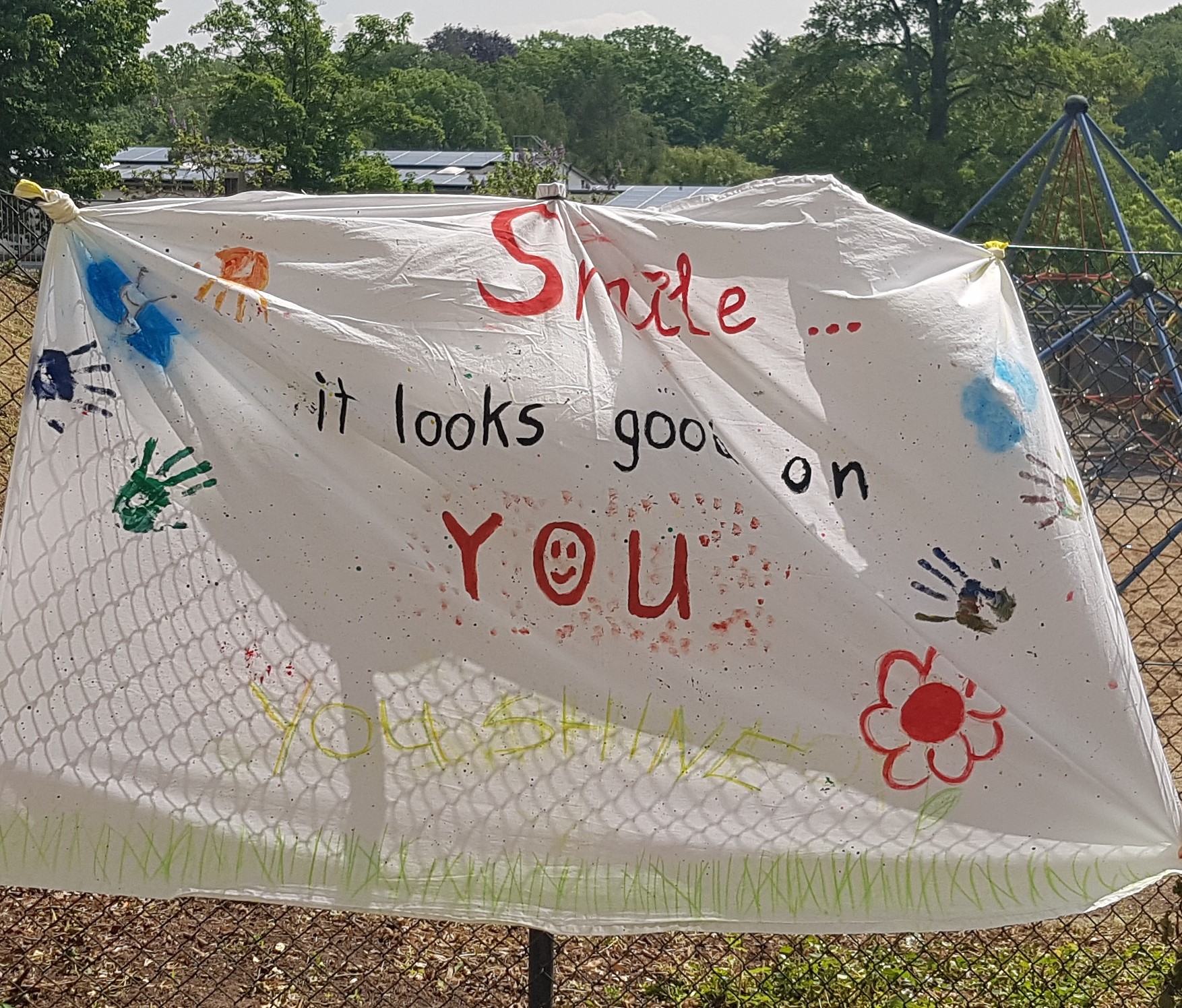 “What can we do to brighten up your day? - You‘re about to find out!” Unter diesem Leitspruch fanden eine Woche lang kleine Projekte der Klasse 9/3 statt. Das Ziel: Positivität im Alltag erfahren und für diese sensibilisiert werden. Ob beim Verteilen von Süßigkeiten im Foyer, aufmunternden Post-its oder Papierfliegern, die an Schließfächern und im ganzen Schulhaus verteilt waren, Challenges, bei welchen Komplimente gestreut oder einfach etwas Witziges gemacht werden sollte … Die Ideen waren vielfältig. Mit viel Eigeninitiative, die auf bemalten Bettlaken auf dem Hof, fröhlichen Holzschildern, Memes oder sogar auf dem eigens eingerichteten Instagram-Channel zu erkennen waren, ging eine durchaus positive Woche zu Ende. Frei nach dem Motto: Seid gespannt, macht mit und lasst euch inspirieren!