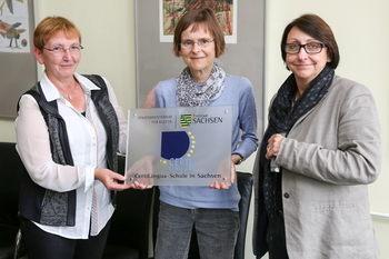 Abb.: Wir erhalten im Sächsischen Kultusministerium die Zulassung als CertiLingua Schule