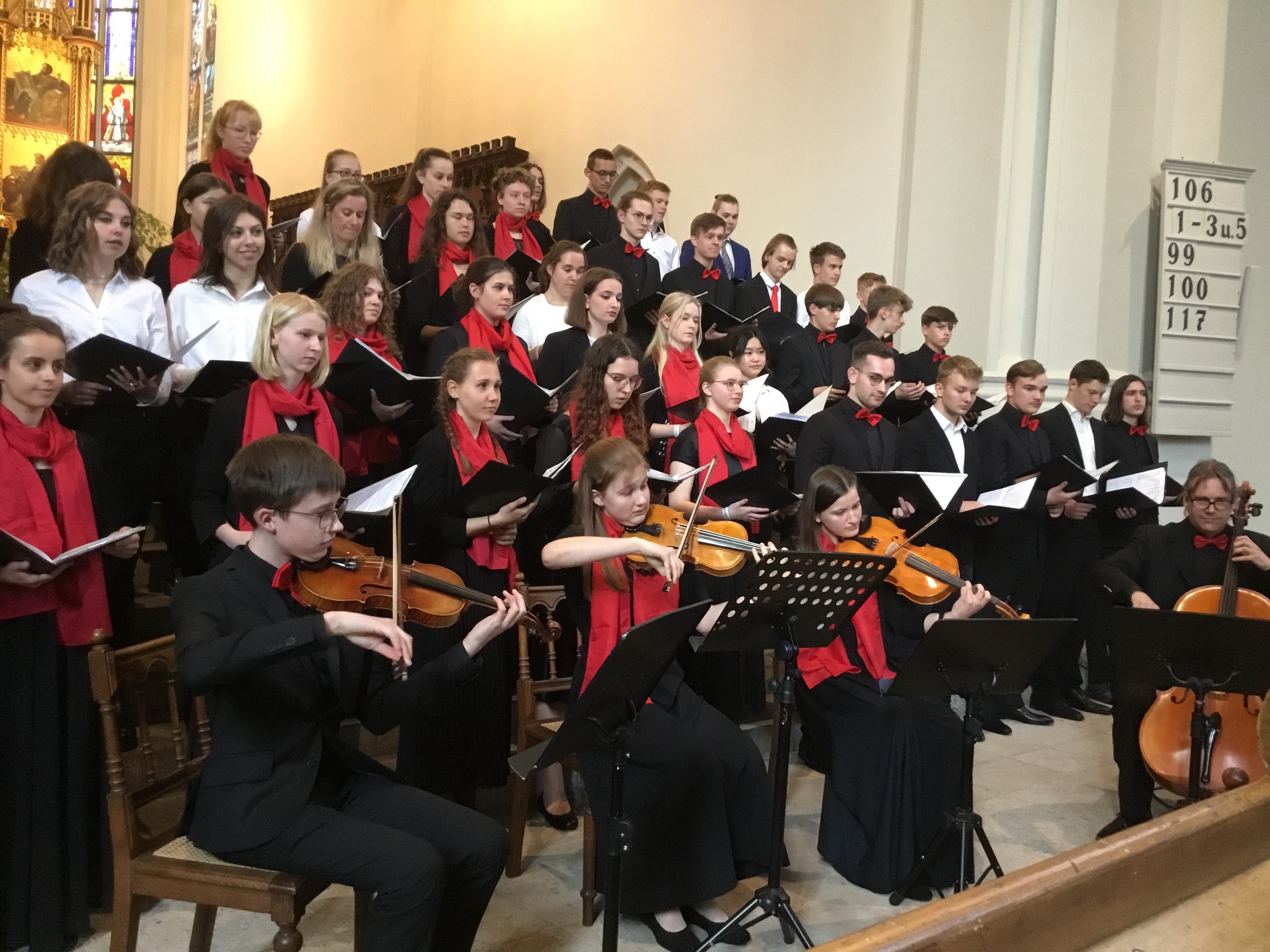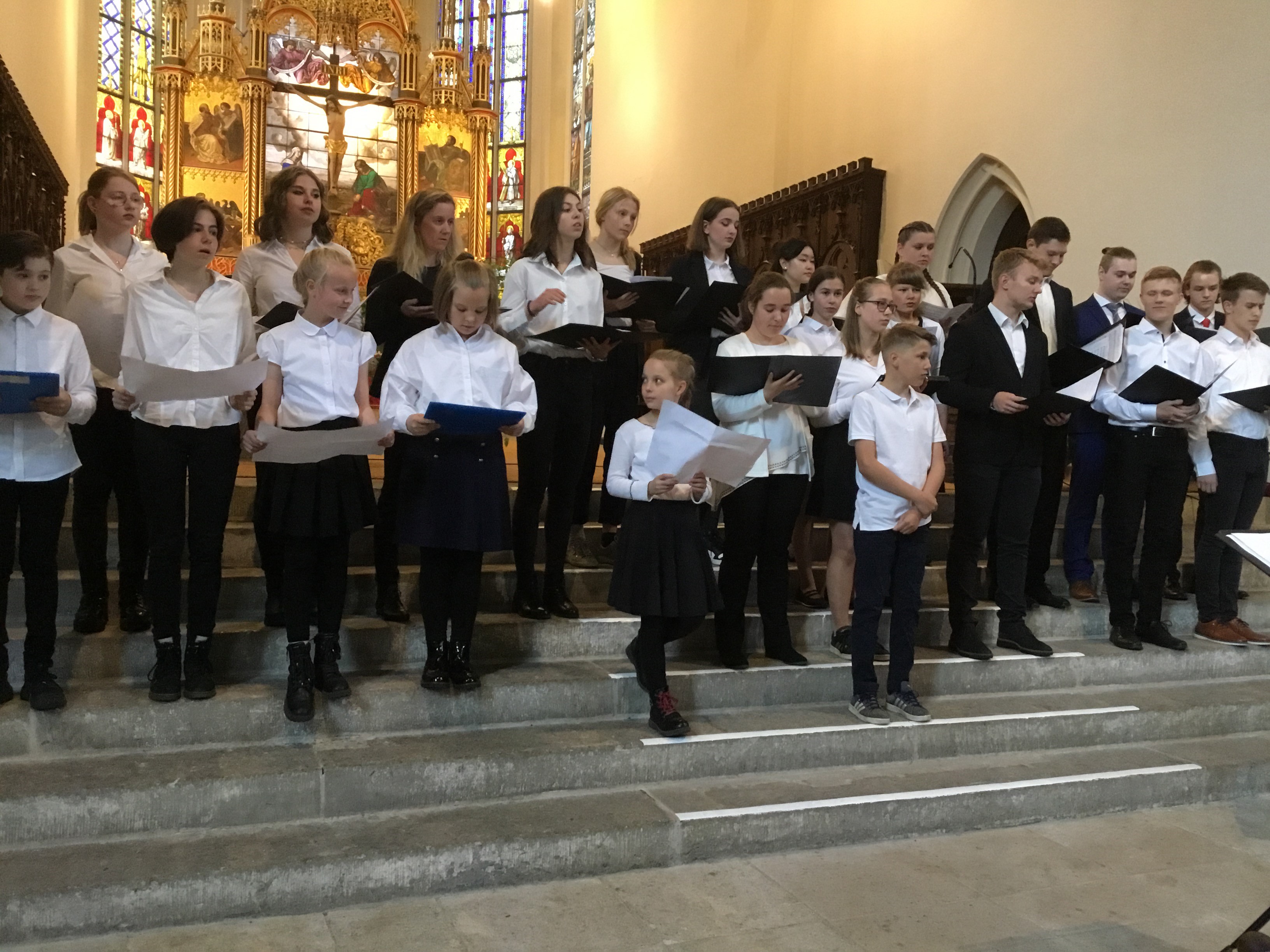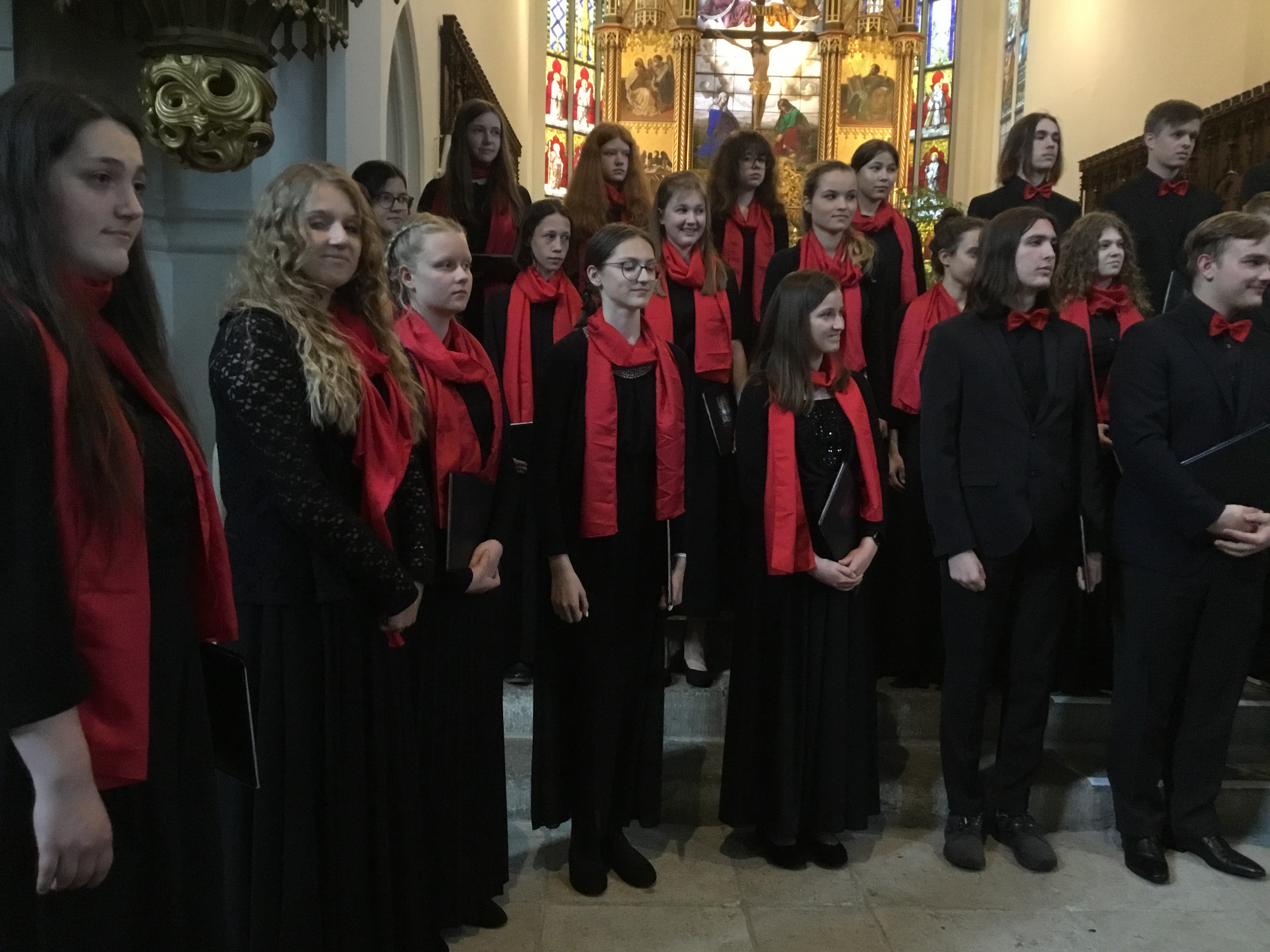 Die Tatsache, dass unser kleiner TMG-Schulchor mit weniger als 20 Mitgliedern einen großen Kammerchor, bestehend aus 45 Sängerinnen und Sängern, treffen und mit ihm zusammen singen würde, sahen wir alle zunächst als nicht realisierbar an. Wir befürchteten, dass wir im Vergleich mit unserem Auftritt viel weniger Wirkung aufgrund der unterschiedlichen Kapazitäten erzielen würden.